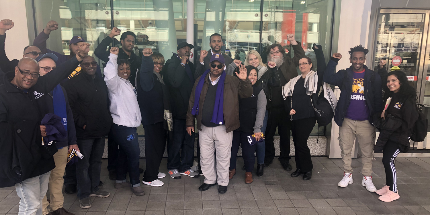 AFT-Maryland stood in solidarity with our brother from SEIU32BJ as he faces discipline for testifying in Annapolis for higher wages. Berhanu Yiferu testified in Annapolis for a bill that would raise the wages of transportation employees. The next day he found out his services were no longer needed at his job.