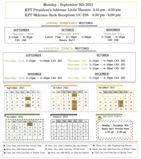 Fall 2013 Calendar at a Glance